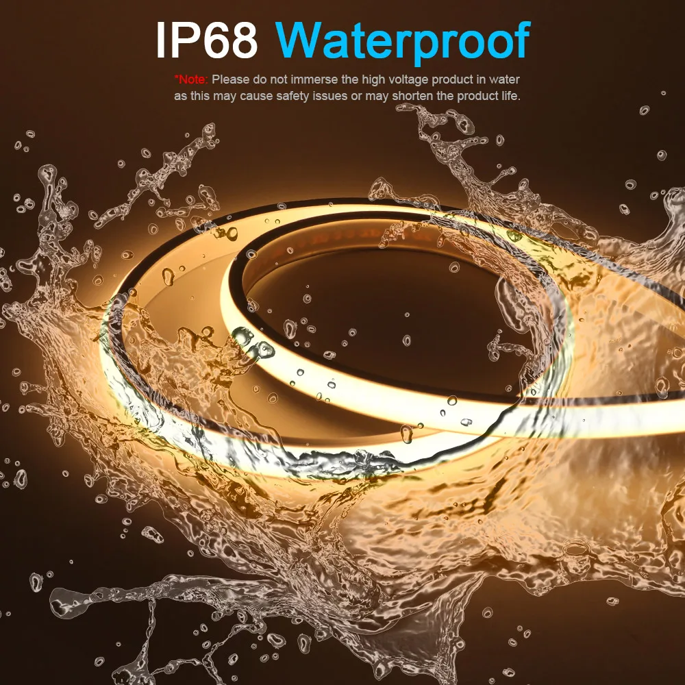 Easy to Install - IP68 Waterproof COB NEON light strip can use indoor and outdoor with low temperature, fast connection and installation. (EU power plug Included)
