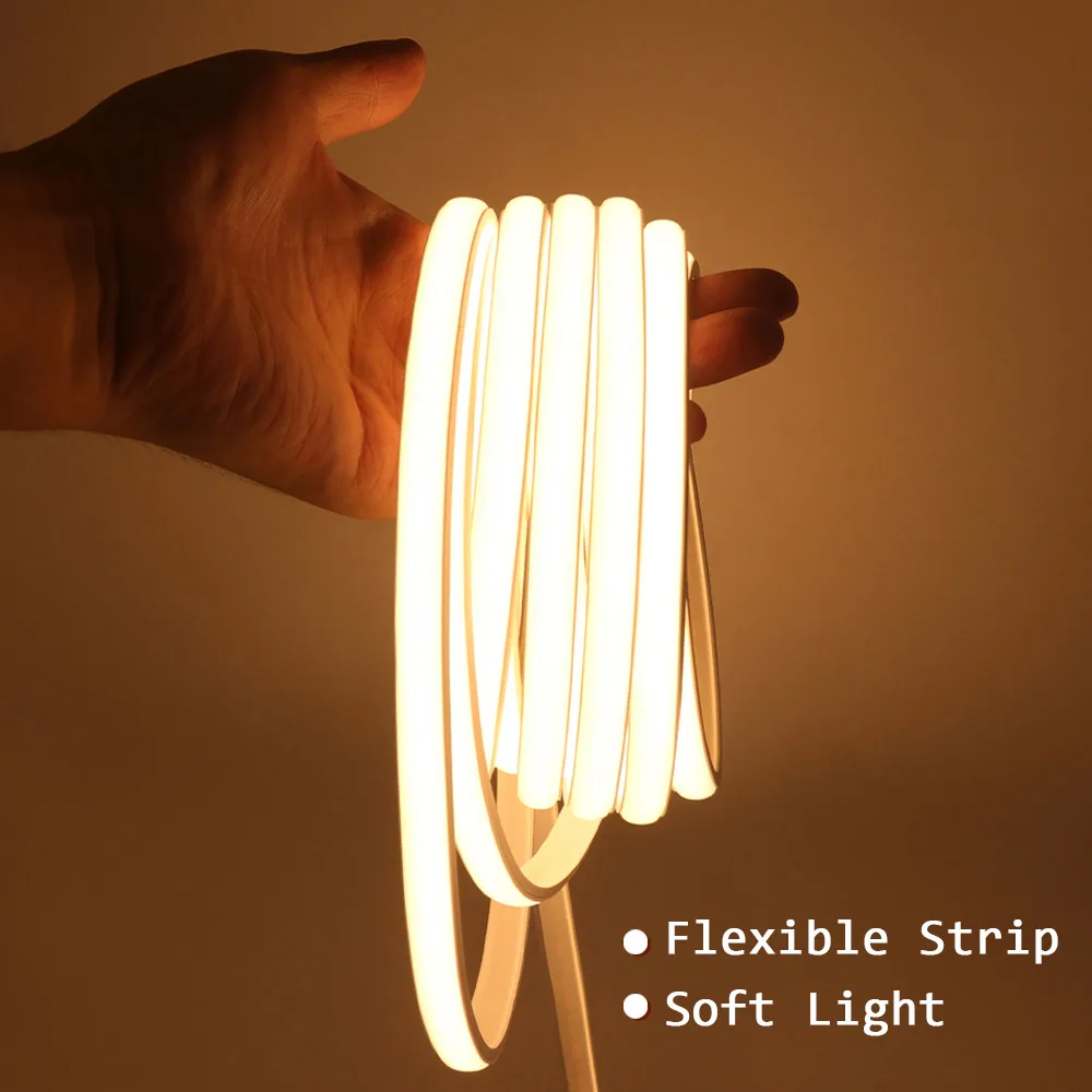 New Type COB NEON LED Light - The new upgraded COB neon lamp is made of flexible transparent Silicone tube which make the light more consisted. You could control them with dimmer(NO dimmer), it is very convenient to adjust brightness. Energy saving!